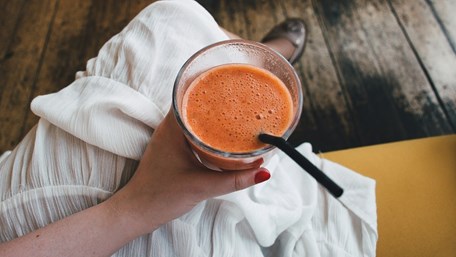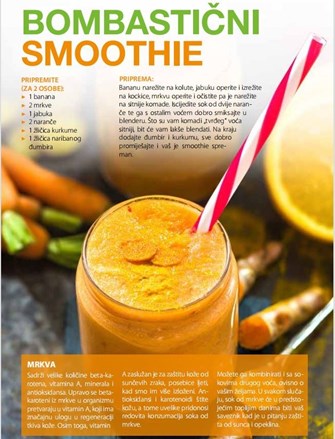 PRIPREMITE (ZA 2 OSOBE): - 1 banana - 2 mrkve - 1 jabuka - 2 naranče - 1 žličica kurkume - 1 žličica naribanog đumbira