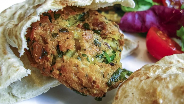 PRIPREMITE (ZA 4 OSOBE): ▶ 100 g špinata ▶ 250 g očišćenog boba ▶ 150 g krumpira ▶ ½ žličice mljevene kurkume ▶ ½ žličice kima ▶ 2 žlice peršina ▶ 30 g krušnih mrvica ▶ jaje ▶ sol