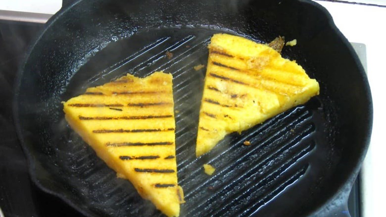 PRIPREMITE (ZA 4 OSOBE): ▶ 200 g kukuruzne krupice ▶ 2 češnja češnjaka ▶ 30 g maslaca ▶ 30 ml maslinova ulja ▶ 100 g naribanog parmezana ▶ 30 g svježeg peršinova lista