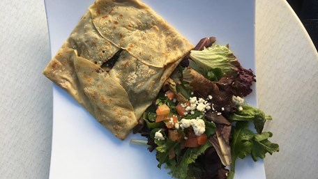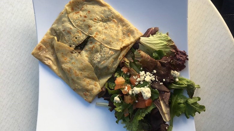 PRIPREMITE Za 10 palačinki : ▶ 330 g heljdina brašna ▶ 1 jaje ▶ 750 ml hladne vode ▶ 5 g soli Nadjev (za 4 osobe): ▶ 4 jaja ▶ 8 ploški kuhane šunke ▶ 8 ploški sira