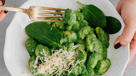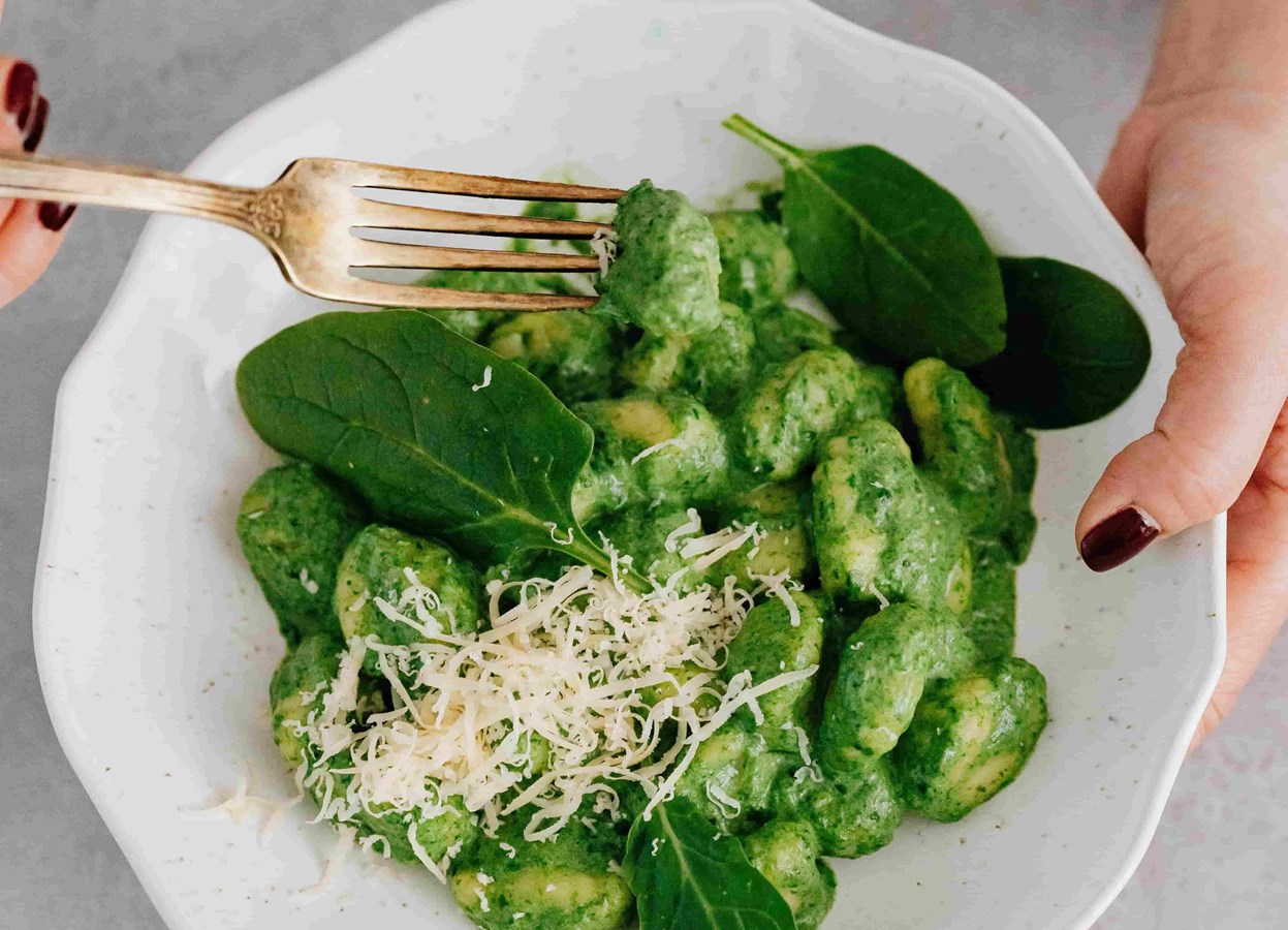 SASTOJCI: - oko 500g špinata (najbolje briketa) - 2-3 žlice maslinovog ulja - 2 češnja češnjaka - 200-300ml mlijeka - 1 mala žličica gustina - 1 kg Ultra Njoki - 1dcl vrhnja za kuhanje po želji
