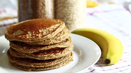 PRIPREMITE (ZA 2-3 OSOBE): - 3 velike zrele banane - 40g kokosova brašna - 50g sitno mljevenih zobenih pahuljica - 2 jaja - 1dl vode - 1 žličica praška za pecivo