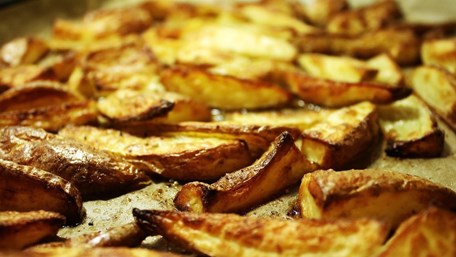PRIPREMITE (ZA 4 OSOBE): ▶ 400 g vrganja ili šampinjona ▶ 400 g krumpira ▶ peršin ▶ 1 češanj češnjaka ▶ 4 žlice ribanog parmezana ▶ 1 dl ekstra djevičanskog maslinova ulja ▶ sol ▶ papar