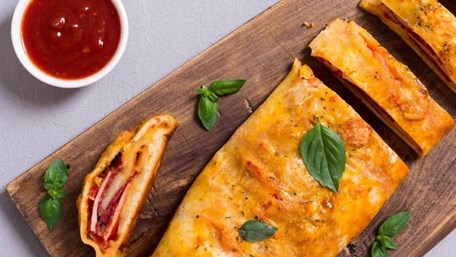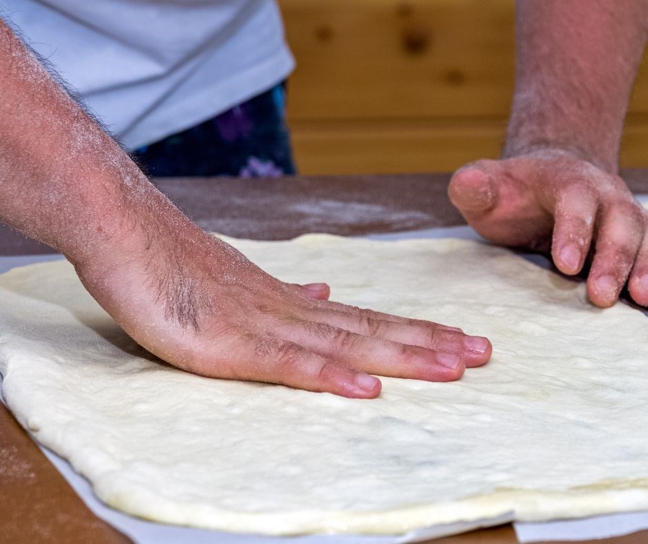 SASTOJCI: - 500g brašna - 1 žličica šećera - 1 vrećica suhog kvasca - 6 žlica maslinovog ulja - 150ml mlijeka - 200ml vode - 1 žličica soli - 3 žličice origana - Sir, salama po želji, ketchup ili umak rajčice