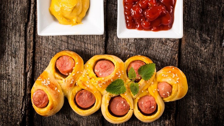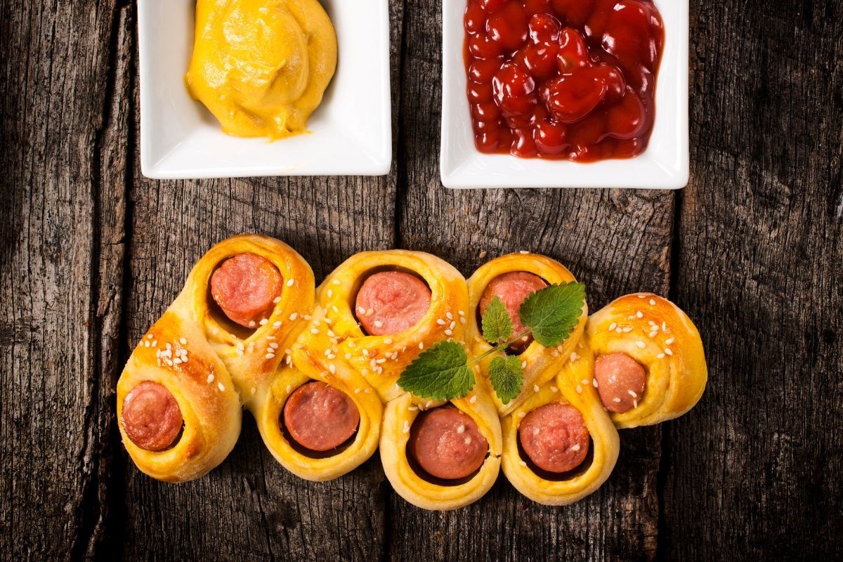 SASTOJCI: - 10-12 hrenovki - 1 jaje - sol - kim, sezam, mak ZA TIJESTO: - 500g brašna - 1 kocka svježeg kvasca - 1 dcl ulja - 2,5 dcl toplog mlijeka - 1 žličica soli
