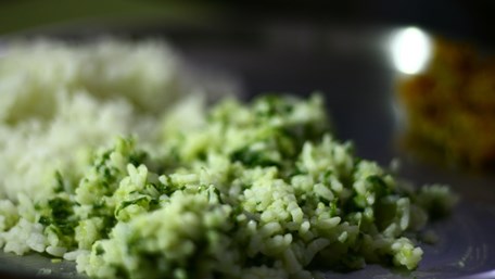 PRIPREMITE (ZA 4 OSOBE): ▶ 600 g bijele ribe ▶ grančica peršina ▶ 1 žlica nasjeckanog češnjaka ▶ 1 žlica nasjeckanog peršina ▶ maslinovo ulje ▶ 1 šalica riže Curtiriso ▶ ½ kg špinata ▶ parmezan, po želji